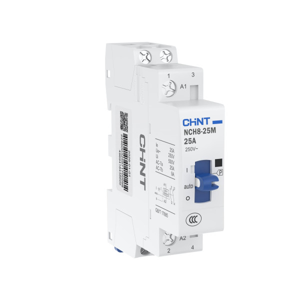 Контактор модульный с ручн. упр. NCH8-25M/20 AC220-240V 50/60Гц (R)(CHINT) Модульный контактор с ручным управлением применяется для ручного и дистанционного управления такой нагрузкой как резистивные печи, бытовые приборы и прочей низкоиндуктивной нагрузкой.